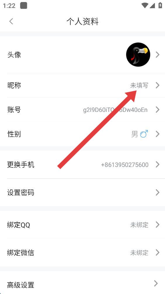 3、在个人资料页面,点击昵称选项,进入设置昵称的界面。
