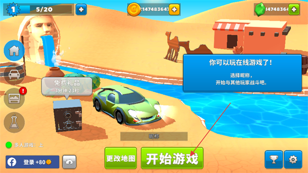 1、打开疯狂撞车王游戏界面,点击下方的开始游戏按钮进入游戏对局。