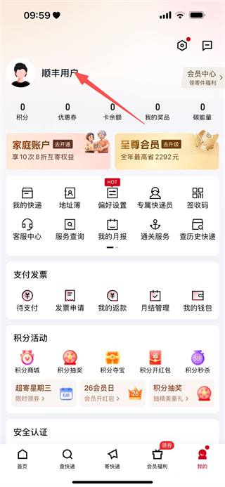 2、在个人页面,点击顺丰用户的区域,进入登录页面。