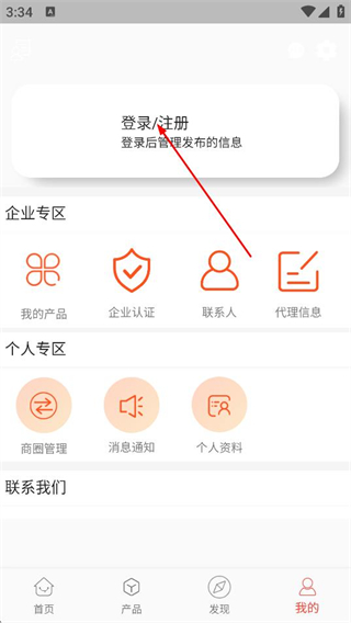2、在个人页面,点击登录/注册选项,进入账号登录页面。