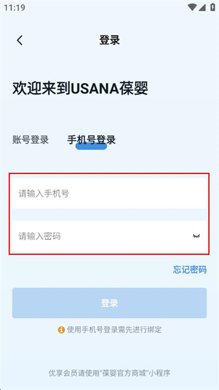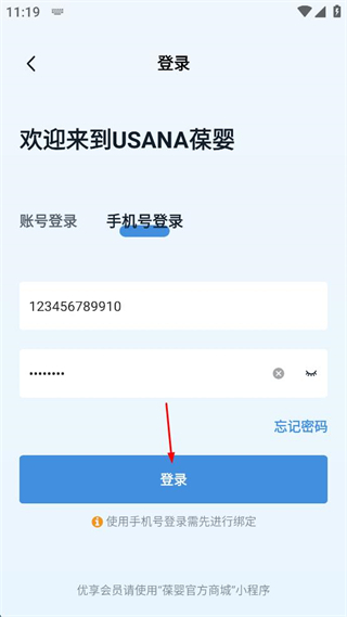 3、在手机号登录的输入框中,依次填写对应的手机号和密码信息。