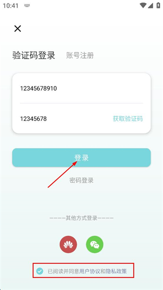 4、勾选已阅读并同意用户协议和隐私政策的选项,点击蓝色的登录按钮,完成账号登录操作。