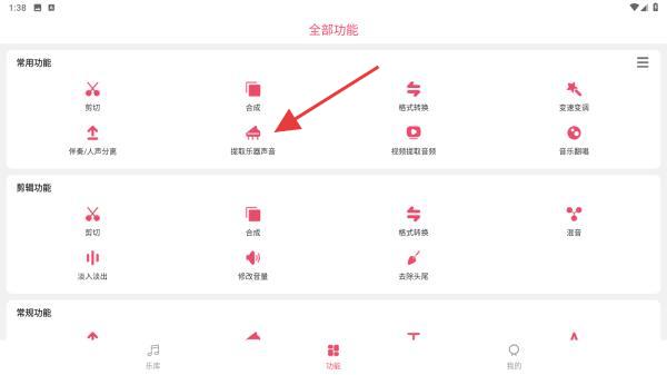 1、在全部功能的页面内,点击提取乐器声音的图标,点击后即可跳转。