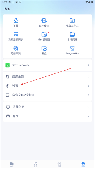 1、启动mx播放器APP,在首页内点击右下角我的功能图标。