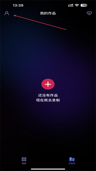 1、打开dj电音节奏大师的应用,在首页点击作品夹的按钮。