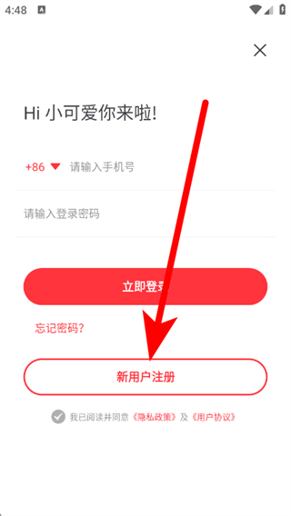 3、在登录页面,点击新用户注册,进入注册界面。