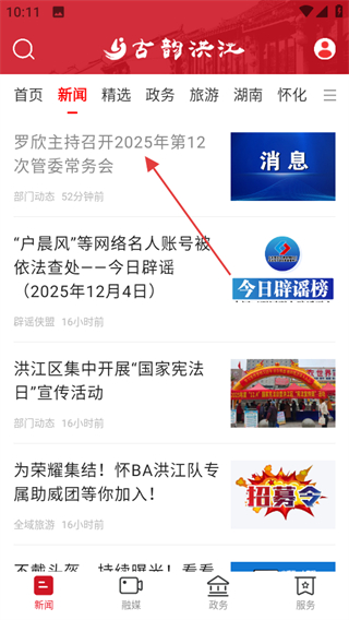 1、在古韵洪江首页,点击顶部的新闻选项,进入新闻列表页面。