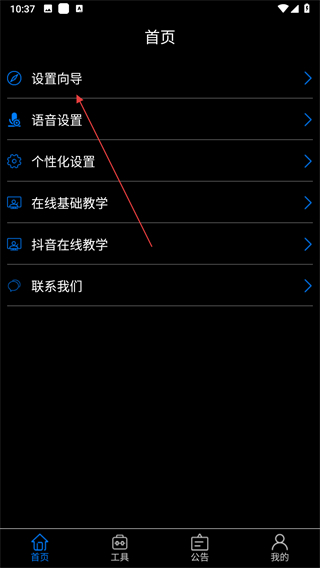 1、打开保益悦听应用,在首页点击设置向导选项。