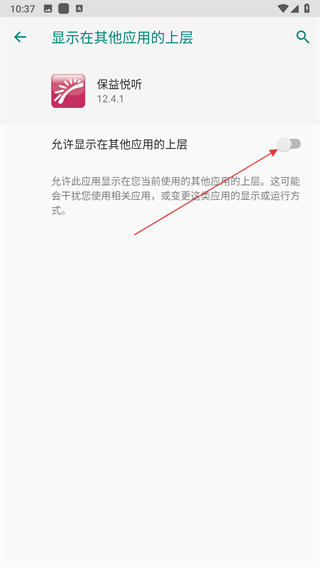 4、将允许显示在其他应用的上层的开关开启,即可开启。