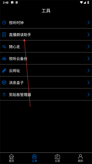 2、进入工具页面之后,找到直播朗读助手选项并点击。