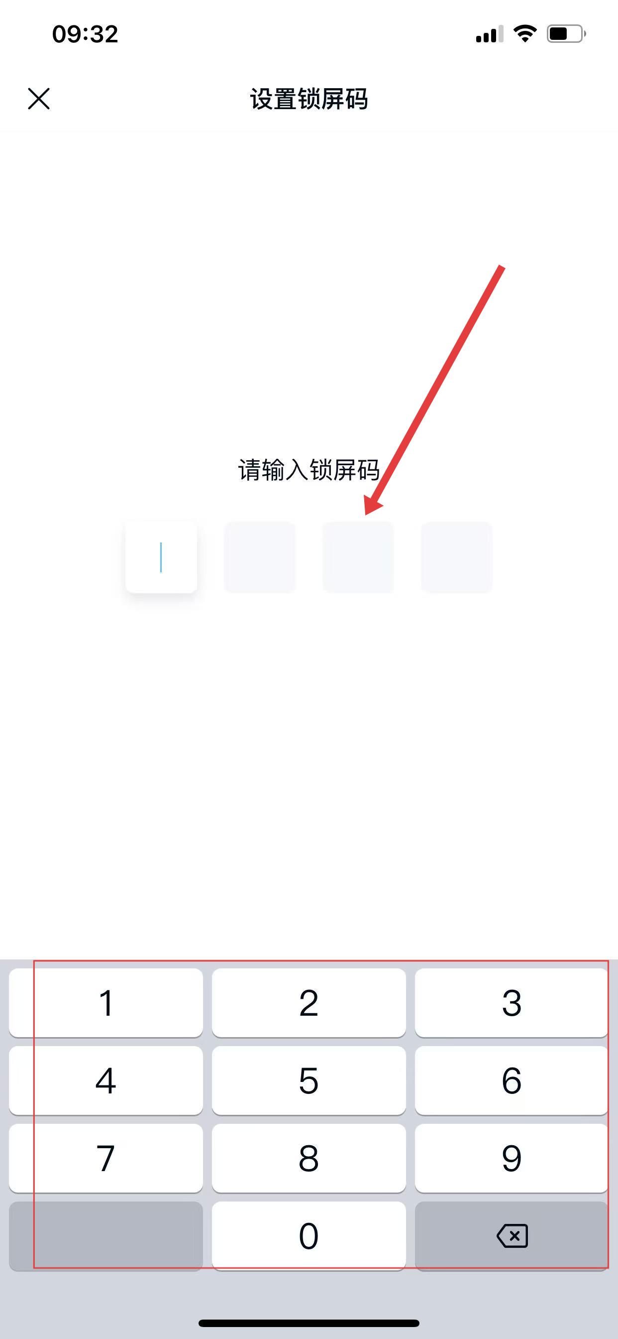 3、开启后会弹出设置锁屏码界面,在下方的数字键盘中输入想要设置的4位锁屏密码,即可完成百度网盘锁屏密码的设置。