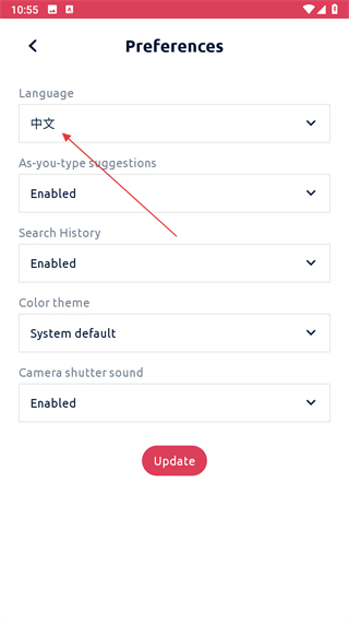 4、在语言列表中,选择中文,即可调成中文。