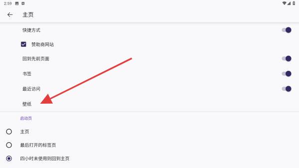 2、在弹出的设置面板中,定位到壁纸的板块,部分版本需展开Firefox主页分类。