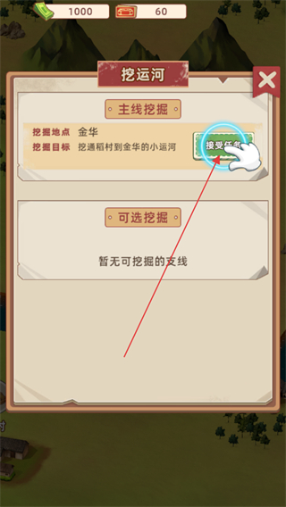 1、在挖运河界面,选择主线挖掘的接受挖掘按钮,开启金华地点的运河挖掘任务。