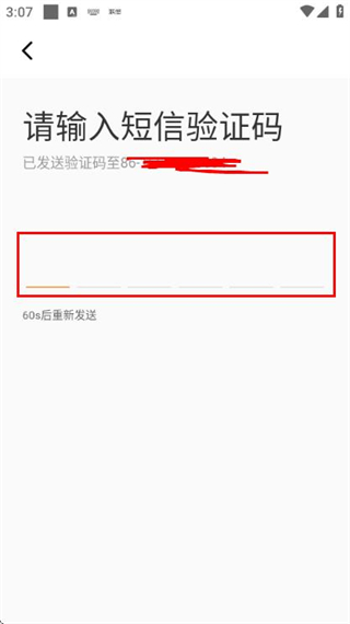 3、在输入短信验证码页面填写收到的验证码,完成账号的登录操作。