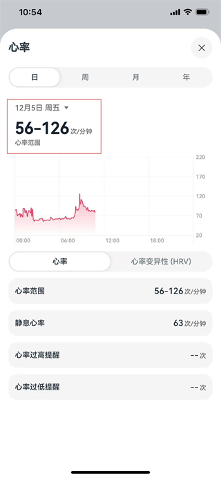 3、在心率数据页面,即可查看当日的心率范围、静息心率等详细数据。