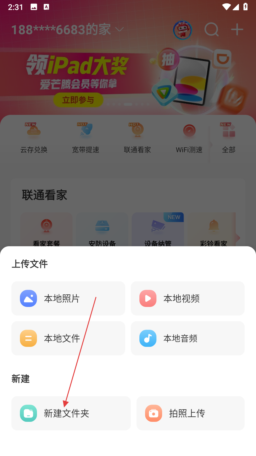 智慧沃家怎么在云盘新建文件夹