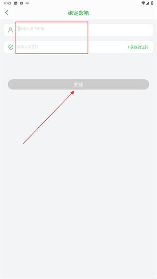 4、输入电子邮箱、验证码后,点击完成即可。