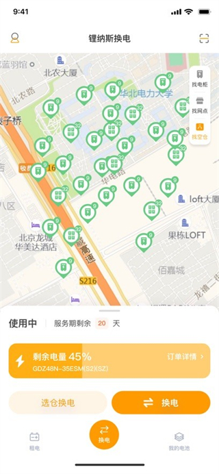 GPS定位功能快速匹配最近换电柜,实时同步电池电量、可用数量等信息,用户可提前规划换电时间,避免到达后无电可用的尴尬。