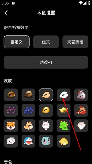 2、在木鱼设置页面选择目标皮肤样式,完成木鱼皮肤的更换操作。