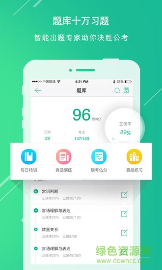 华图题库app是华图教育全新推出的省考国家公务员必备神器,以华图1000题为主,收录了历年来各地的公务员考试真题,更有特色直播课程让你系统化学习,帮助你早点上岸,绿色资源网诚意推荐!