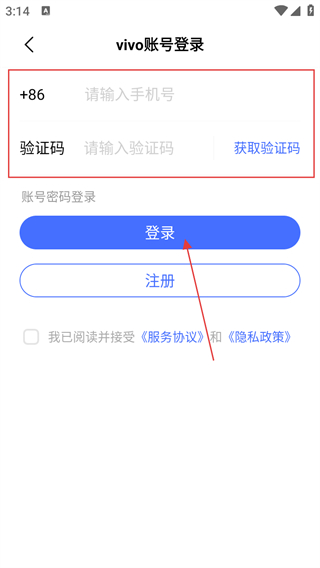 3、输入手机号码、验证码,勾选协议,点击登录。