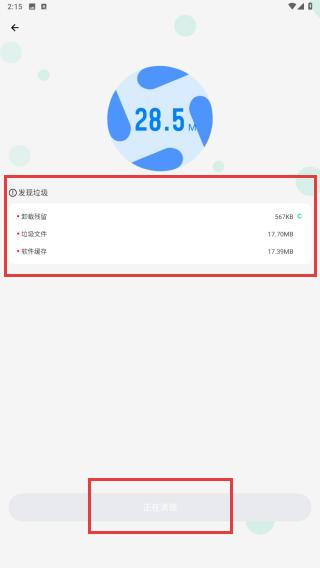 2、点击后自动扫描应用缓存、广告残留、临时文件等,过程中需要用户进行等待。