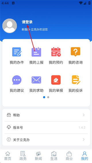 1、在新服办·立克办首页,点击底部导航栏我的,进入个人页面。