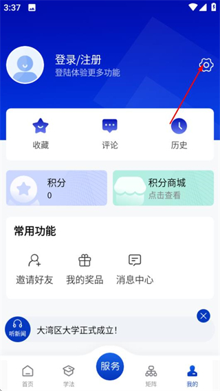1、在赣法云首页,点击底部的我的选项,进入个人中心页面。