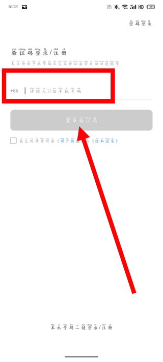 4、在验证码输入框,输入验证码,勾选协议后,完成登录操作。