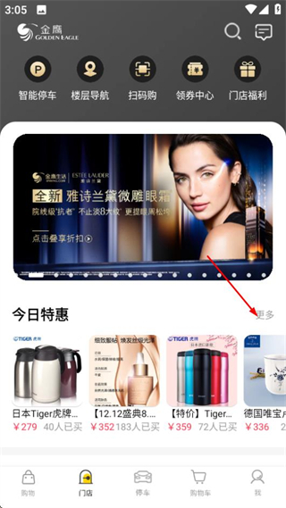2、在门店页面,点击今日特惠右侧的更多按钮,进入特惠商品列表页。