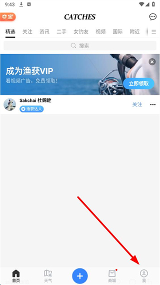 1、打开渔获APP,点击右下角我进入个人页面。