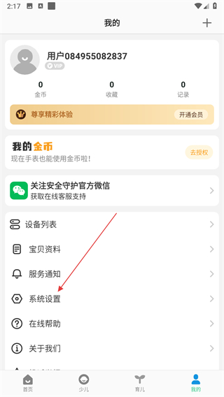 2、在个人中心页面里,找到系统设置选项,点击该选项进入应用的设置界面。