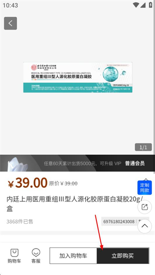 3、在商品详情页,点击立即购买按钮,进入商品规格选择页面。