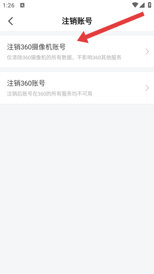 4、在注销账号页面,点击注销360摄像机账号选项,按提示完成后续注销操作。