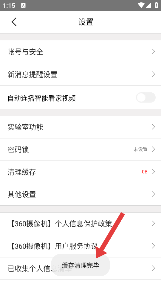 360智能摄像机怎么清除缓存