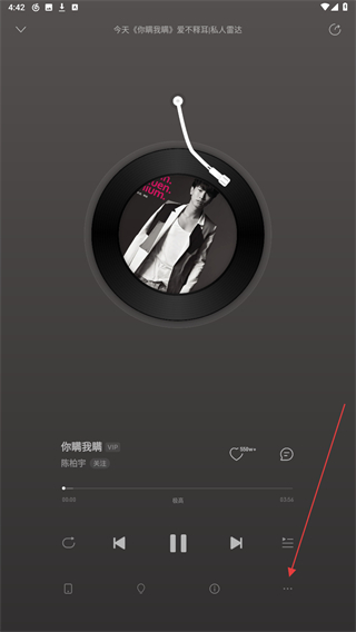 3、进入播放的页面内,点击中间唱片的区域。
