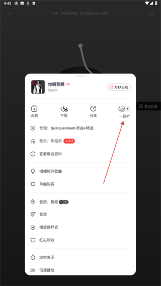4、在下方弹出的菜单栏中,找到并点击一起听的按钮。
