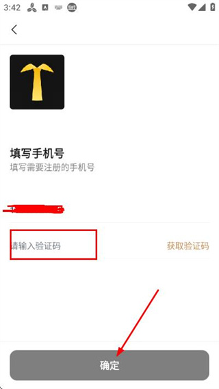 3、在验证码输入框中填写收到的验证码,点击确定完成注册操作。