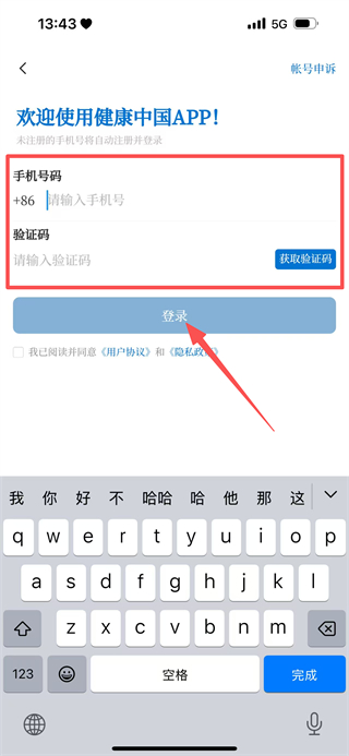 4、在登录界面填写手机号、验证码,点击登录,完成账号登录的操作。