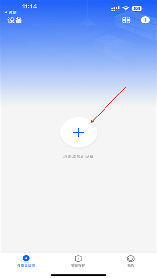 1、打开乔安云监控的应用,在首页点击+的图标。