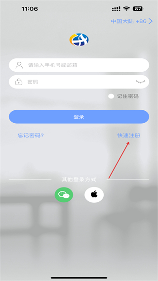 1、启动乔安云监控APP,进入时点击快速注册的按钮。