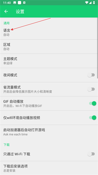 3、在设置页面,找到并点击语言选项。
