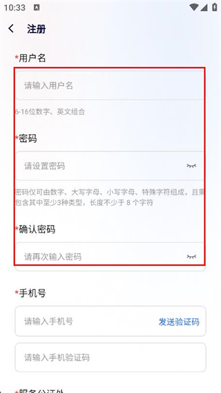 3、在注册页面,输入用户名、设置密码并确认密码。