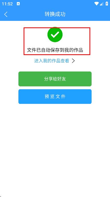 4、转换成功后,文件会自动保存到我的作品,可进行查看、分享等操作。