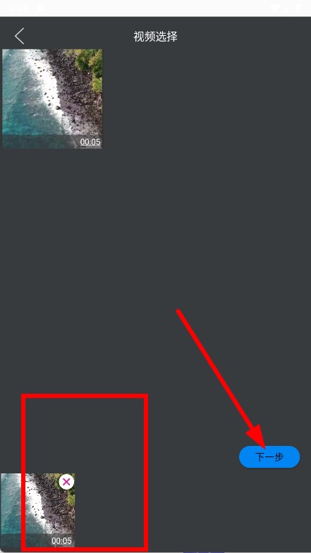 2、进入视频选择界面,勾选要剪辑的视频,点击下一步。