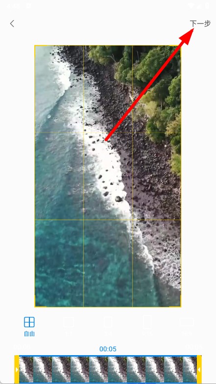 3、在视频编辑界面,对视频进行裁剪等操作,之后点击下一步。