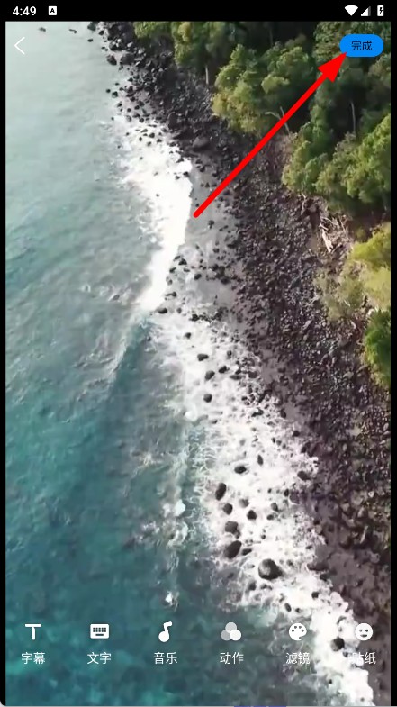 4、进入视频美化等功能界面,可添加字幕、文字、音乐等,完成后点击完成,即可生成剪辑好的视频。