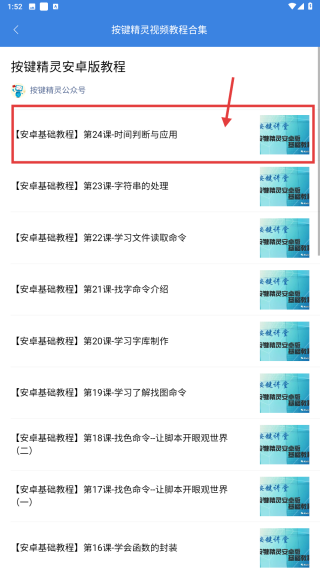 3、在教程列表中,找到安卓基础教程第24课-时间判断与应用条目,点击进入教程详情页。