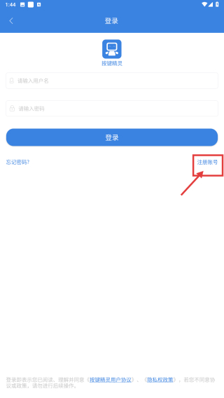 3、在登录界面,点击注册账号选项,进入注册页面。
